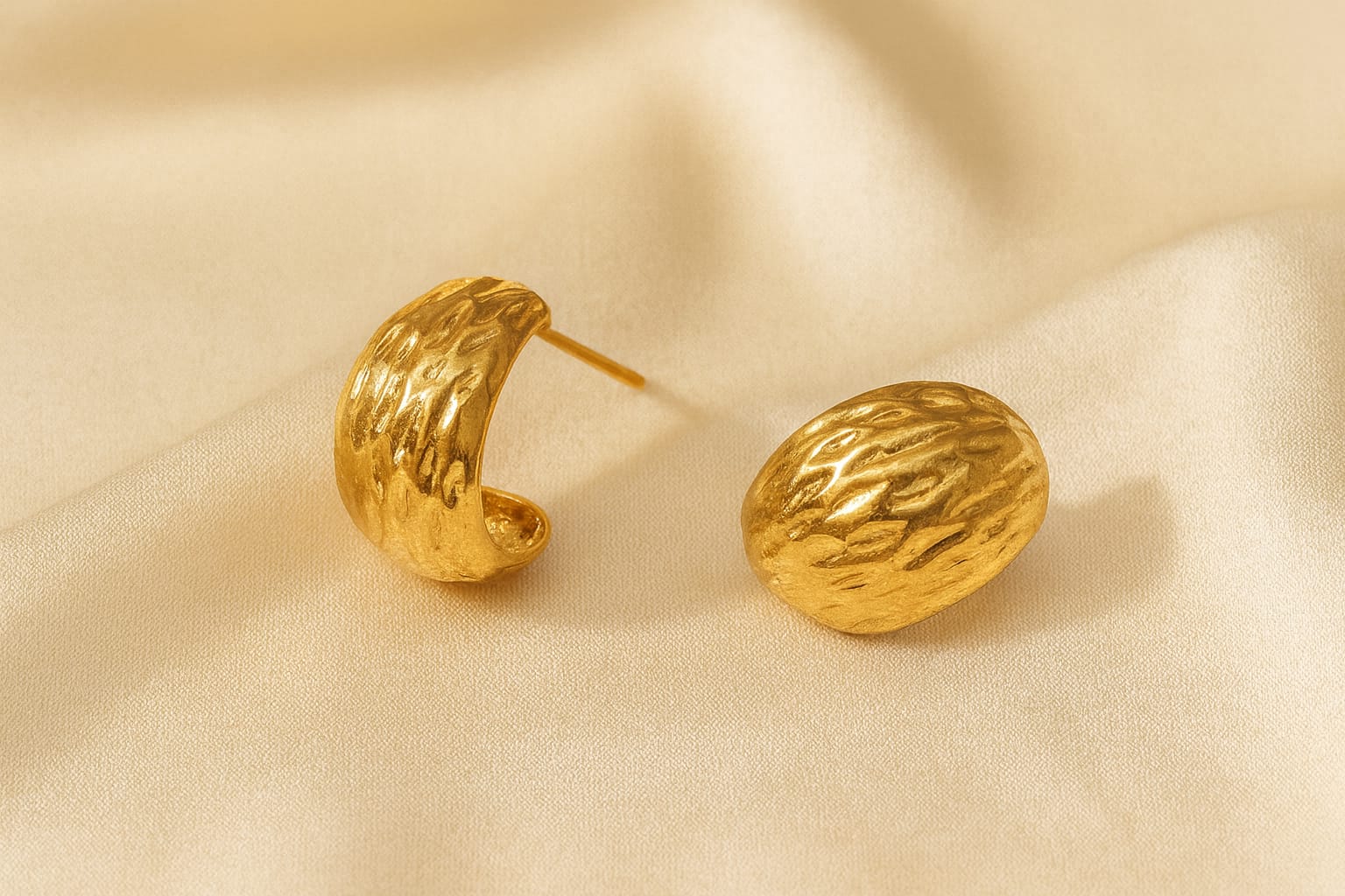Bold and textured, the Hammered Hoops add a modern edge with their artisanal, uneven finish. A chic twist on classic gold hoops, perfect for everyday wear or statement styling.