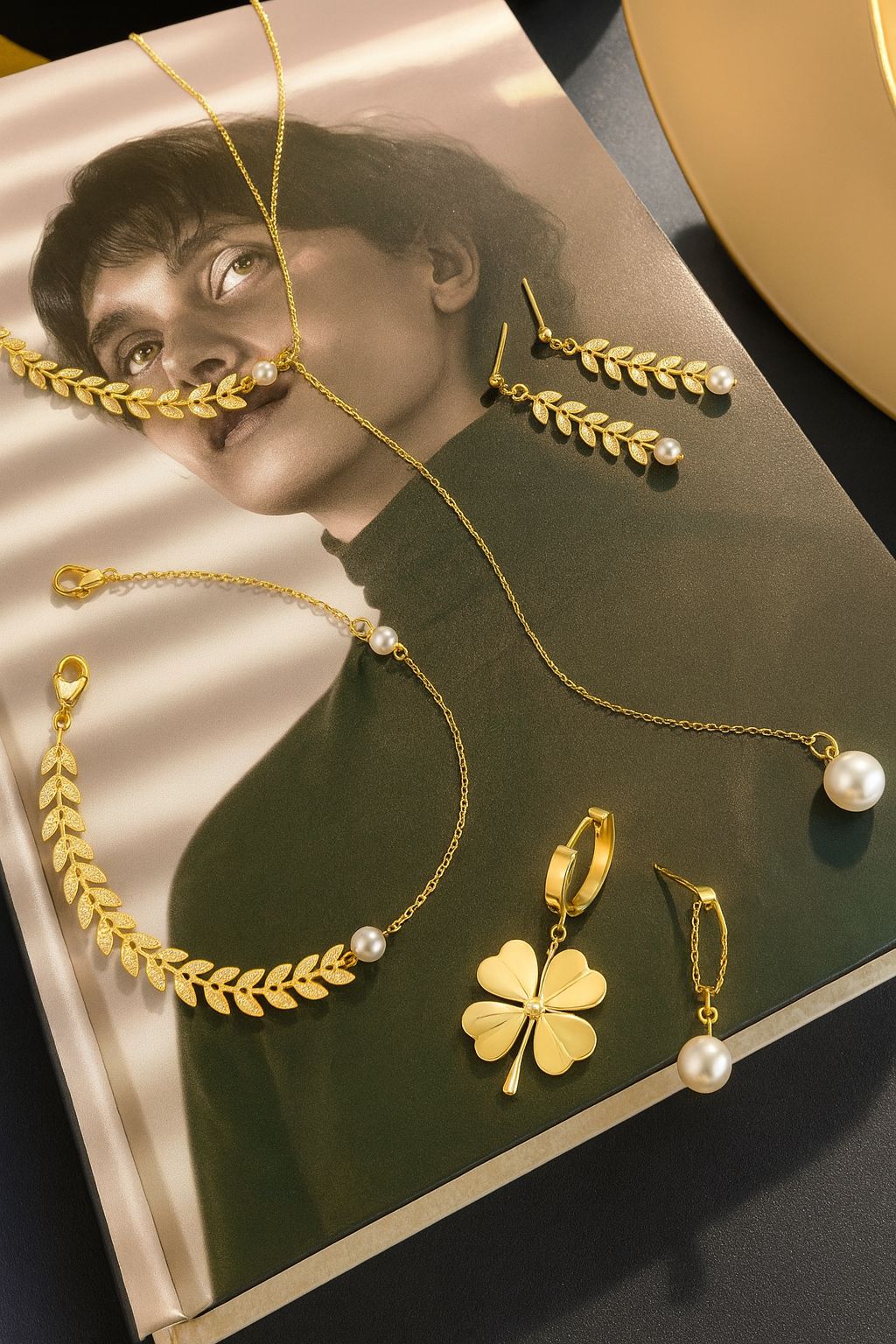 An elegant whisper of good fortune and natural beauty. The Lucky Bloom Set brings together a graceful leaf-motif necklace and a matching bracelet, each accented with a single, luminous pearl. This coordinated set is a symbol of new beginnings and quiet strength, designed to be worn as a personal reminder that every day holds a bit of magic. Effortlessly chic and full of radiant charm, it’s a timeless duo for your collection.
